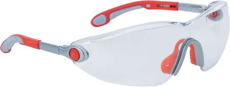Lunettes polycarbonate monobloc incolores. Branches nylon inclinables et ajustables. Embouts spatulés. Pont nasal