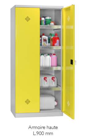 Conformes aux exigences applicables en matière de prévention des risques chimiques (Code du travail), ces armoires de sûreté permettent le stockage sécurisé de produits dangereux.