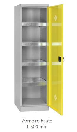 Conformes aux exigences applicables en matière de prévention des risques chimiques (Code du travail), ces armoires de sûreté permettent le stockage sécurisé de produits dangereux.